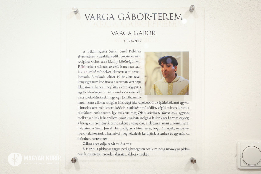Méltó helyre kerül az emléktábla. A plébánia mellett, a templommal szemben álló épület közösségi térré válása ugyanis nagyban köszönhető Varga Gábornak. A közösség így fogalmaz az emléktáblán: Varga Gábor „élére állt annak a törekvésünknek, hogy egy jól kihasználható, nemes célokat szolgáló közösségi ház váljék ebből az épületből (…). Így született meg Ófalu szívében közvetlenül egymás mellett a hívek lelki-szellemi javát kiválóan szolgáló, különleges hármas egység: a liturgikus események otthonaként a templom, a plébánia mint a kormányzás helyszíne, a Szent József Ház pedig arra kínál teret, hogy ünnepek, rendezvények, találkozások alkalmával még közelebb kerüljünk Istenhez és egymáshoz, örömben, szeretetben.”